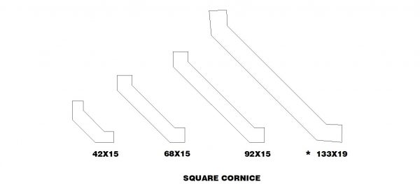 42×15, 68×15, 92×15 Square Cornice are stocked in Clear QLD Pine and Finger Jointed Pine. 133×19 Square Cornice is run to order only and may incur a setup fee.